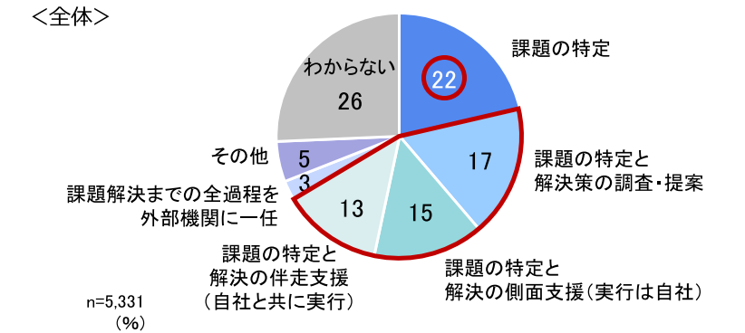 多くの中小企業は、「課題解決策の調査・提案」や「側面支援」「伴走支援」といった専門的なサポートに期待を寄せています。